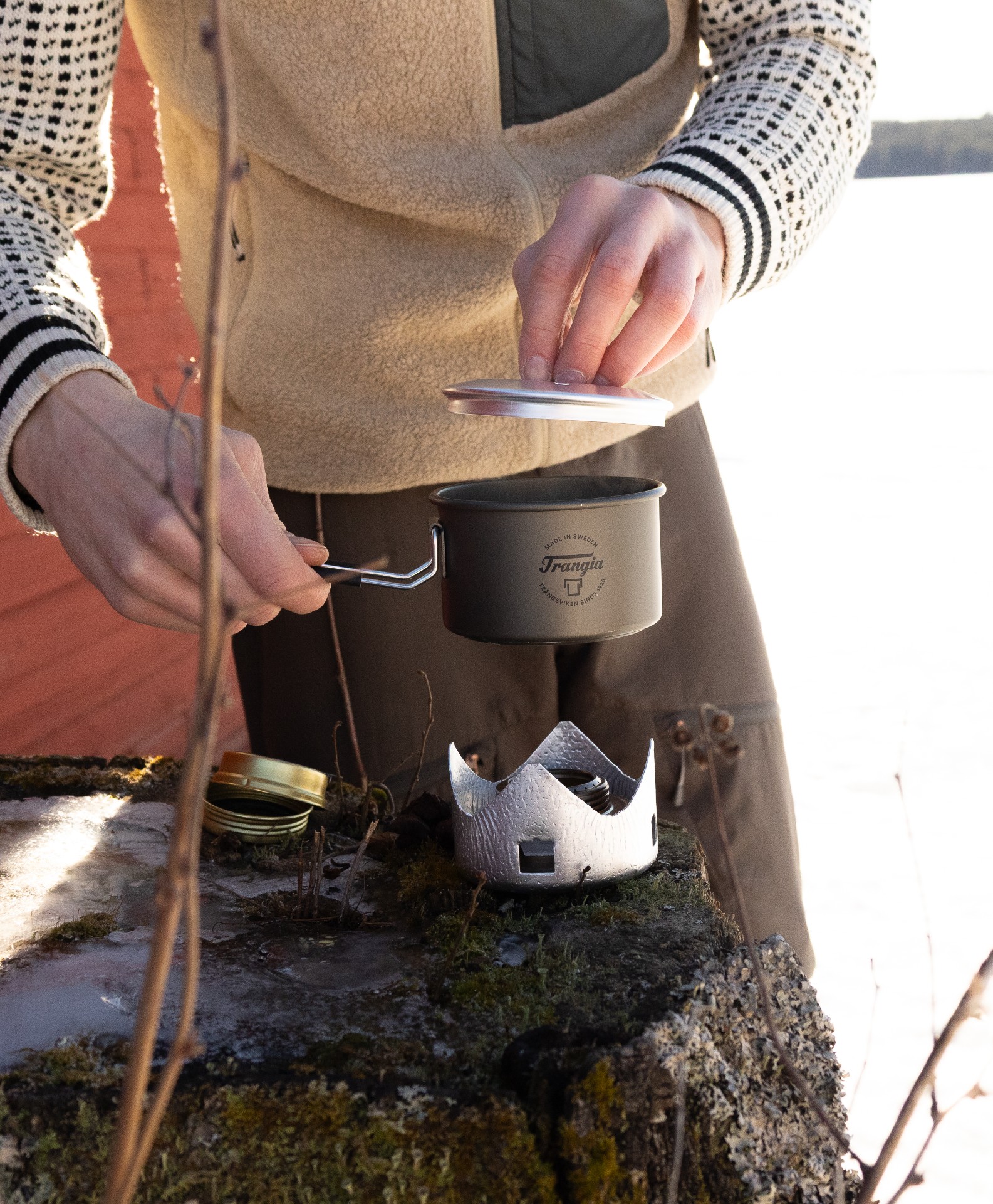 Trangia Micro Original HA- kittel i hardanodized aluminium. Vårt minsta kompletta kök som passar bra för att värma en snabb lunch eller en kopp te.